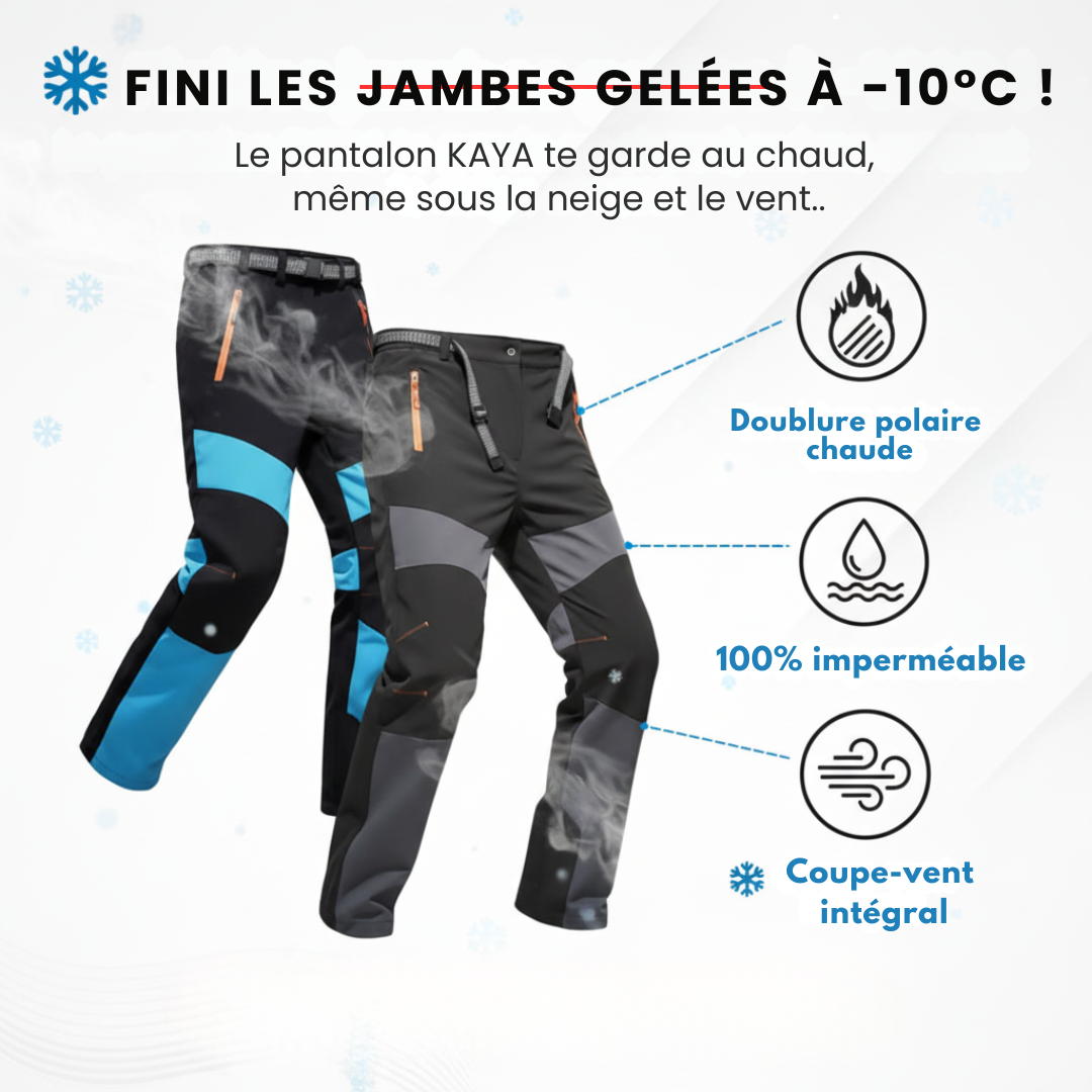 Le pantalon colle, le froid s’installe, et au moindre geste… il craque. C’est désagréable — et pourtant, totalement évitable. Le pantalon KAYA PARIS a été conçu pour en finir avec ça : imperméable, coupe-vent et résistant, il bloque l’humidité tout en restant souple et respirant.