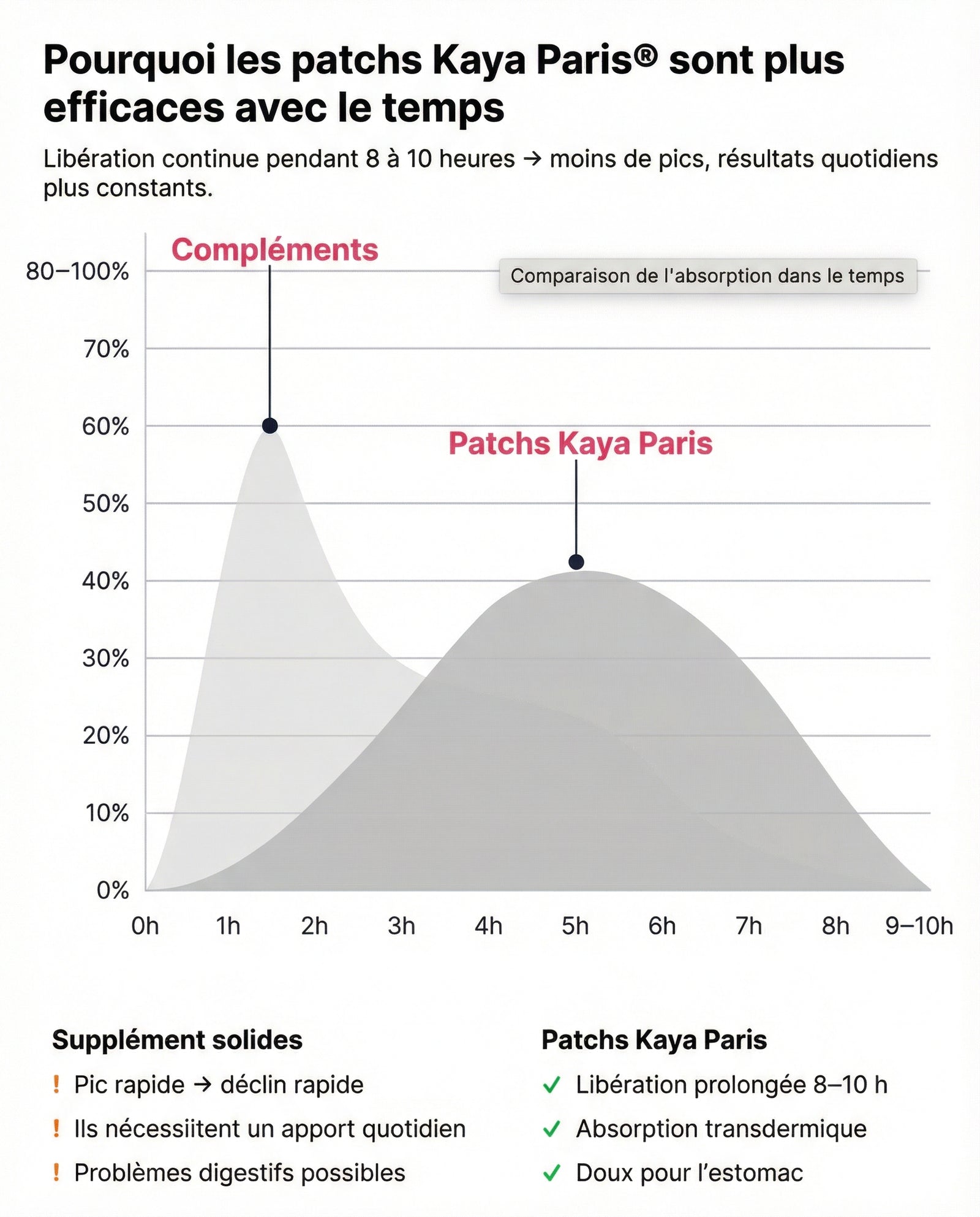 Chaque patch Kaya Paris associe trois ingrédients actifs naturels qui agissent en synergie pour rééquilibrer en douceur mais efficacement le métabollisme et la faim.